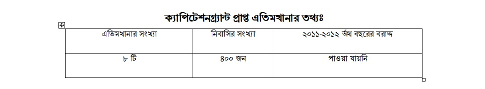 ক্যাপিটেশনগ্র্যান্ট প্রাপ্ত এতিমখানার তথ্যঃ