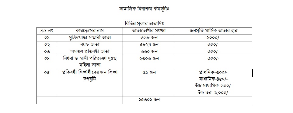 সামাজিক নিরাপত্তা কর্মসূচীঃ